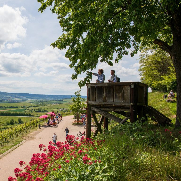 Bei dieser Tour sind wir direkt oberhalb des Neckars bei der WeinTerrasse Kirchheim, von wo aus wir einen herrlichen Ausblick auf die steilen Weinhänge und die Neckarschleife haben.