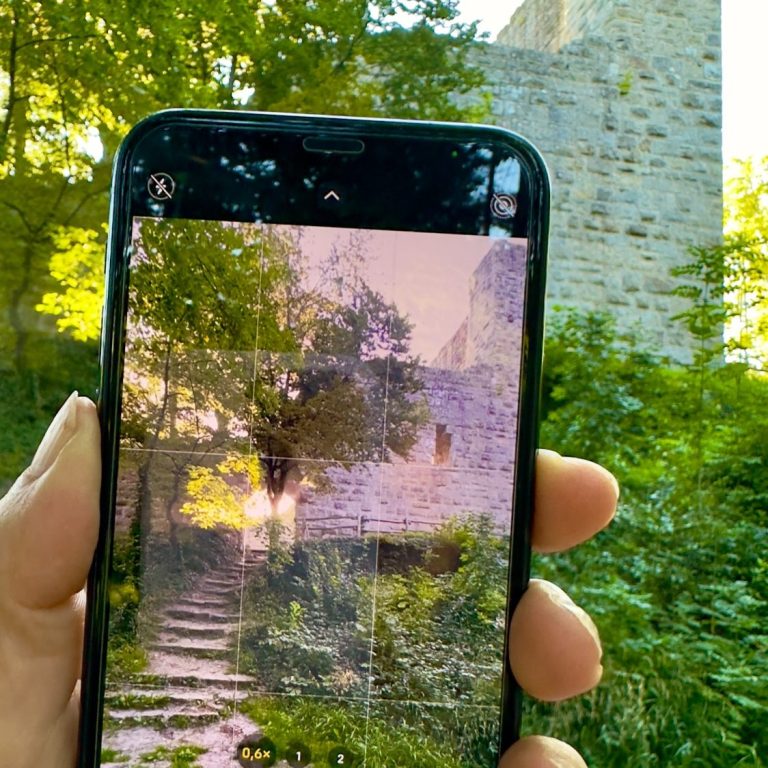 Rund um die Burgruine Blankenhorn haben wir viele Plätze und Motive um zu verweilen und in Ruhe die zahlreichen Einstellmöglichkeiten von unserem Smartphone auszuprobieren.